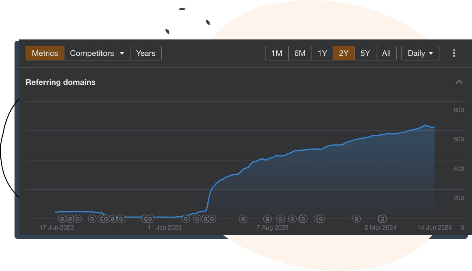 - 600 unique backlinks on targeted keywords over a span of 2 years