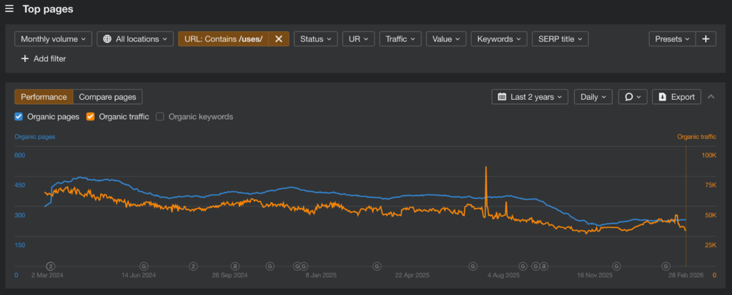 It works. This section contributes over 30,000 monthly organic traffic, and unlike informational content that attracts early-stage readers, use case pages attract buyers who are already thinking in terms of solutions.