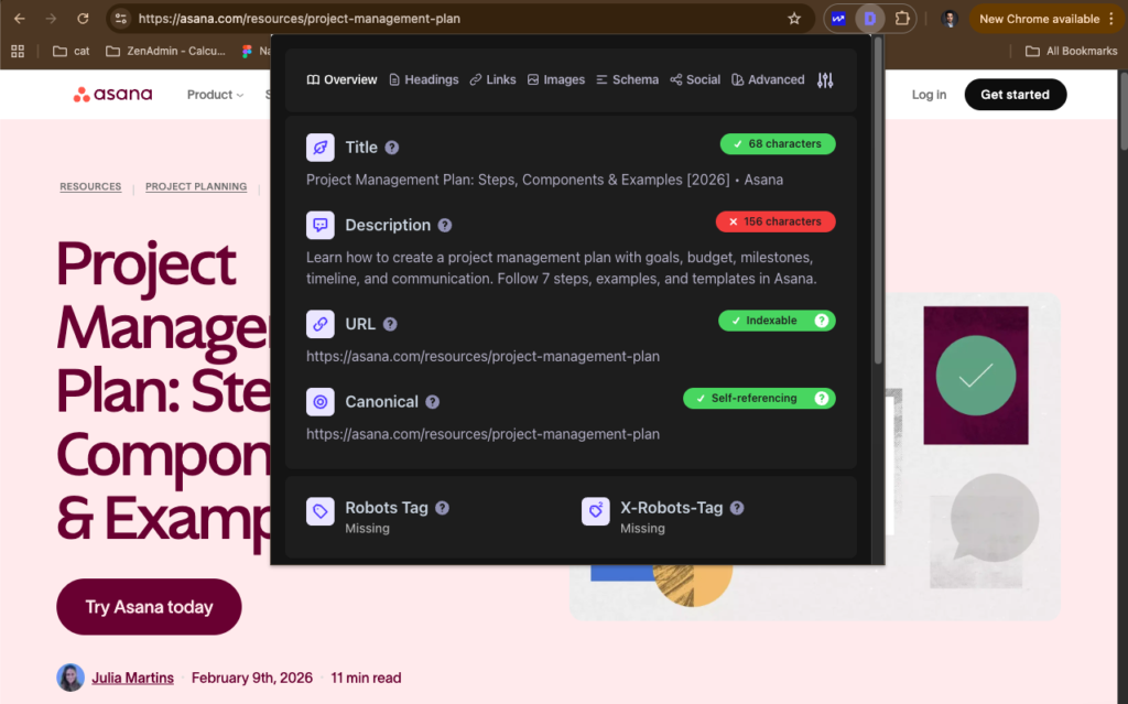 Asana’s on-page SEO is precise enough to feel like it came from a documented playbook rather than individual writer decisions. Most of it did.