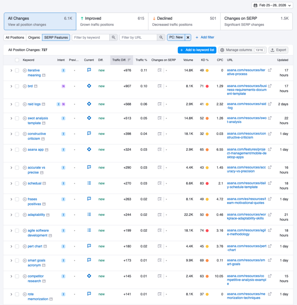 That’s a counterintuitive finding worth sitting with. More content doesn’t mean more traffic. Fewer, deeper, better-structured guides consistently outperform a high-volume publishing cadence. Asana seems to know this, which is why Resources gets the investment and the Blog plays a secondary role.