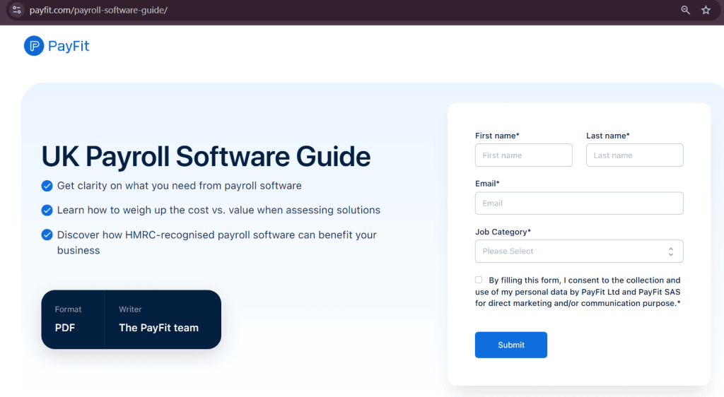 PayFit also uses downloadable guides like the “UK Payroll Software Guide” to capture leads and build topical authority. Combined with internal linking from blogs to guides to product pages, this forms a clean SEO funnel.