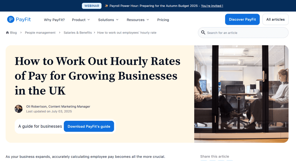 Their blog focuses on evergreen, search-driven topics such as “how to calculate weekly pay” or “how to work out hourly rates.” These posts are structured for featured snippets and AI visibility, simple, keyword-rich, and helpful.