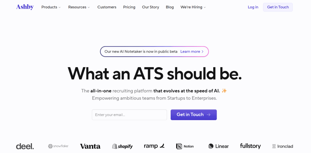 Ashby is a recruiting platform that combines ATS, CRM, scheduling, and analytics in one system, built for growing teams that want a unified hiring workflow.