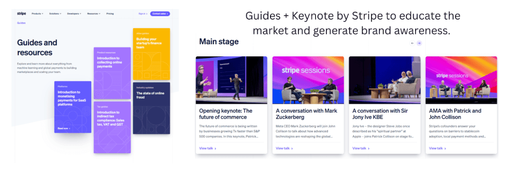 Their content hub features blogs, guides, documents, case studies, events, Stripe Press, and customer stories, all designed to build understanding and trust. You get answers, examples, and next steps in one ecosystem.