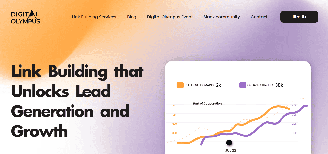Digital Olympus focuses on long-term authority building for B2B SaaS companies through strategic link placement and performance monitoring. Their expertise lies in backlink profile analysis and link schedule development, making them a good choice for businesses with ready-to-use, high-quality assets.