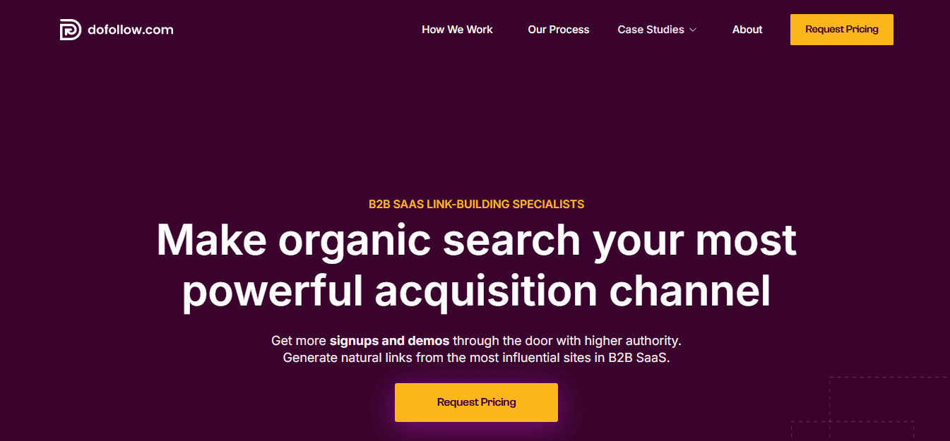 Dofollow specializes in relation-based link building, competitor research, and quality assurance for SaaS brands. Their unique approach treats backlinks as an acquisition channel, using them to close knowledge gaps and deliver value to readers. Dofollow is ideal for companies with established content strategies and well-defined KPIs.