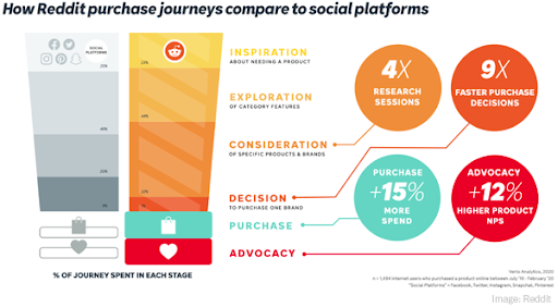 - People on Reddit make 9x faster purchase decisions and spend 15% more than others.