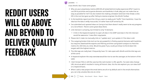 Reddit can also be used to learn what the audience wants and create freebies Redditors would find useful. As a SaaS brand, you can provide cheat sheets on SEO, blogging, Facebook advertising, etc.