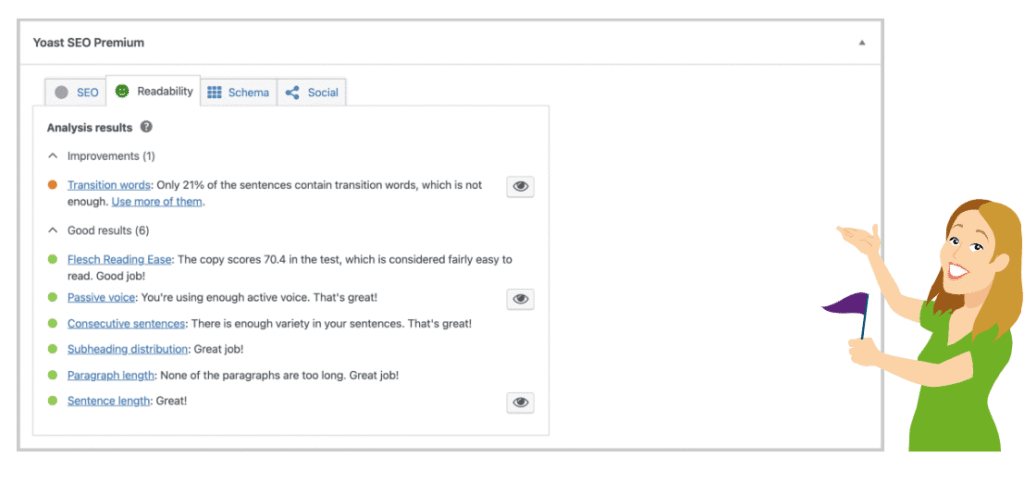Let’s face it, no one wants to read content filled with jargon and fancy words. Using complex language makes it hard for people to understand it. The Yoast SEO readability analysis helps you create easy-to-read content.