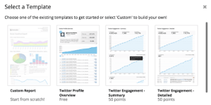 *Hootsuite reports and analytics work on a points-based system. These points can be purchased separately in the final step of completing your analytics reports. A Pro user gets 50 points for generating reports every month. If you are a Free account user, you will be required to upgrade your Hootsuite account. Once you have finished adding modules to your report you can see the points counter at the top of your dashboard. If you exceed the available points, as an indicator, the number of points changes to red.