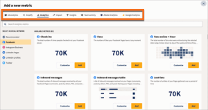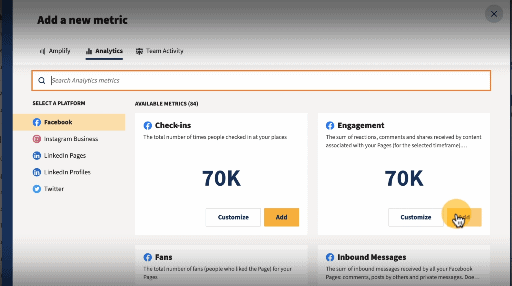 - Select a social network from the Metrics library and search for a metric. You may also search for specific metrics using the search bar.