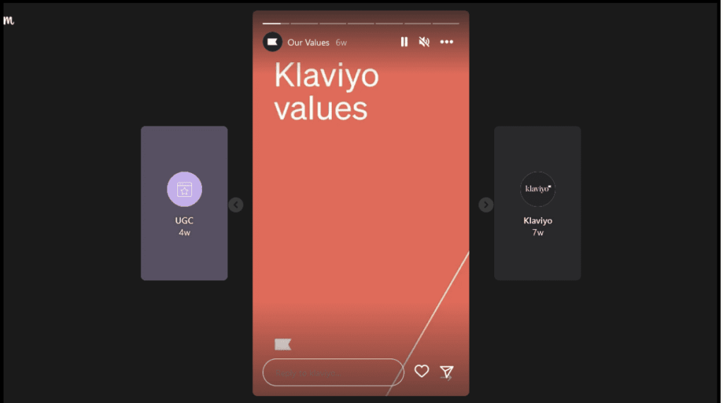 Instagram stories only last 24 hours, but Klaviyo knows they can make these stories last forever by creating story highlights. This makes it easier for both old and new viewers to browse and engage with your previous stories.