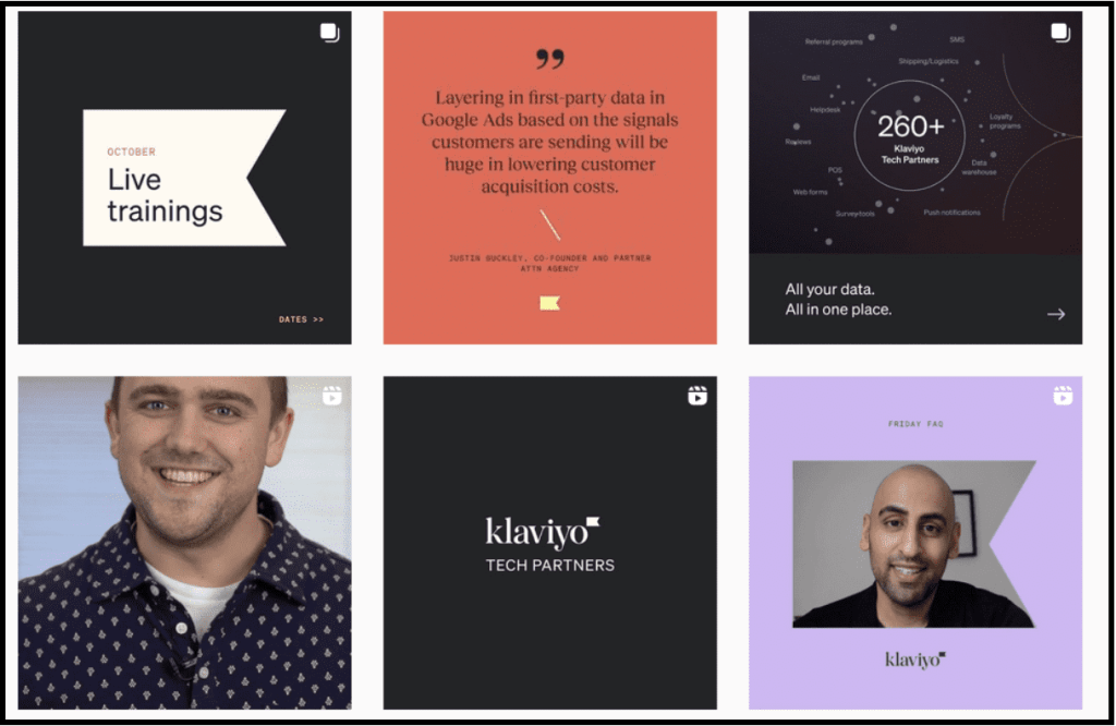 Also, Klaviyo understands that in establishing your brand, design uniformity is key. Hence, these posts look very similar to each other—a great strategy to boost brand recognition.