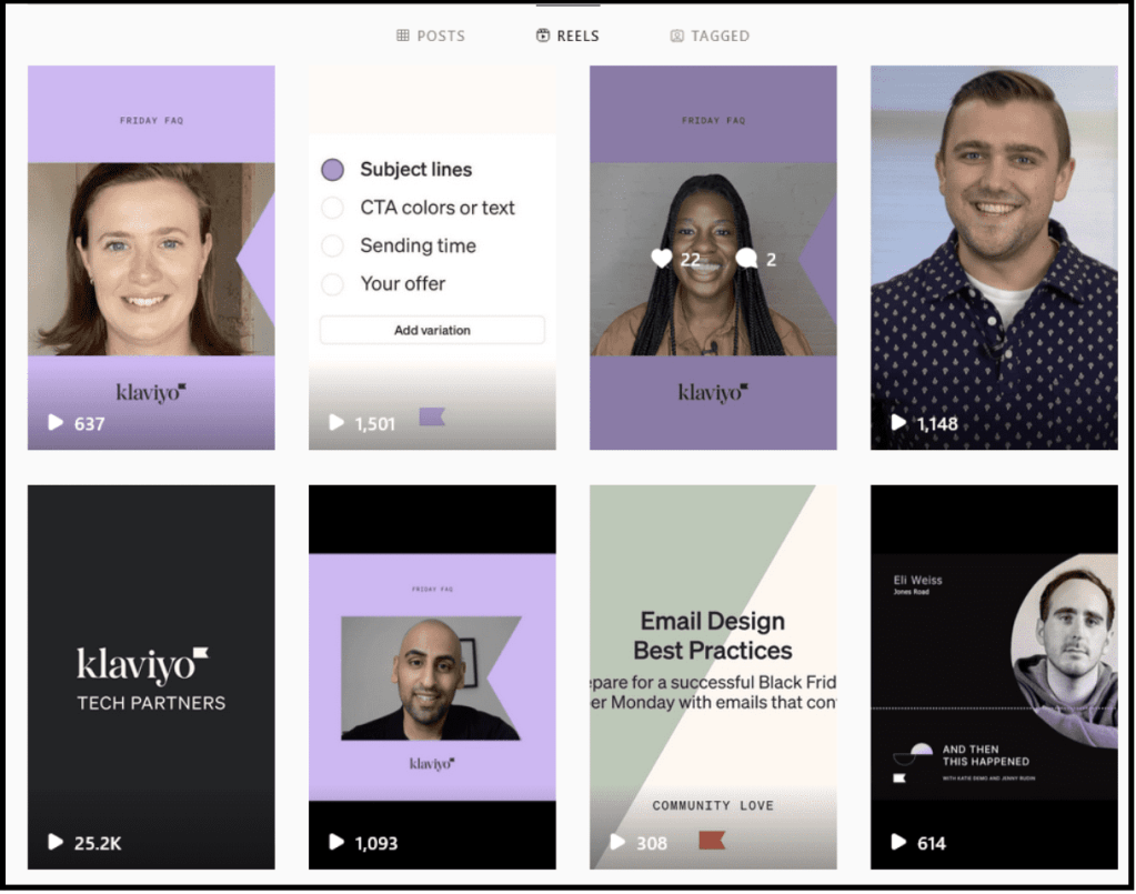 As was already discussed, it’s crucial to experiment with various content formats if you want your B2B brand to establish a significant presence on Instagram. Knowing that most people find video content engaging, Klaviyo has experimented with Instagram reels.