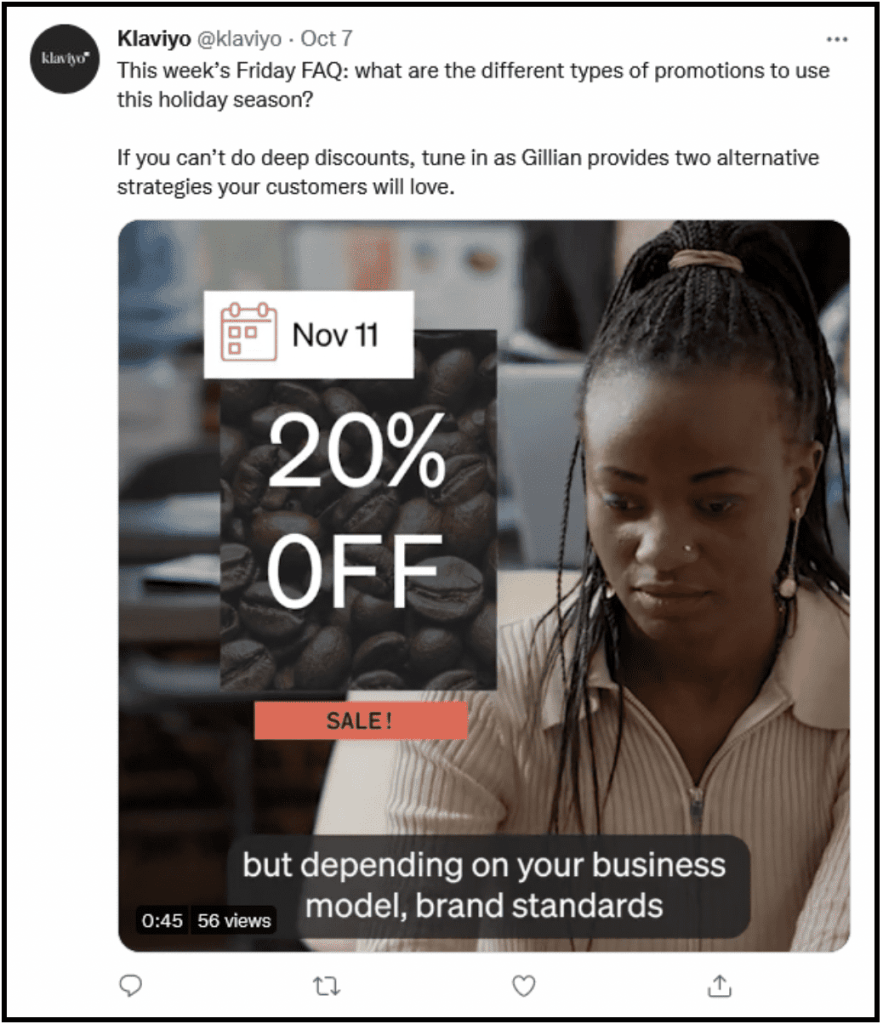 Klaviyo has also promoted its Friday FAQ questions on Twitter because it knows its audience is not restricted to a single platform.