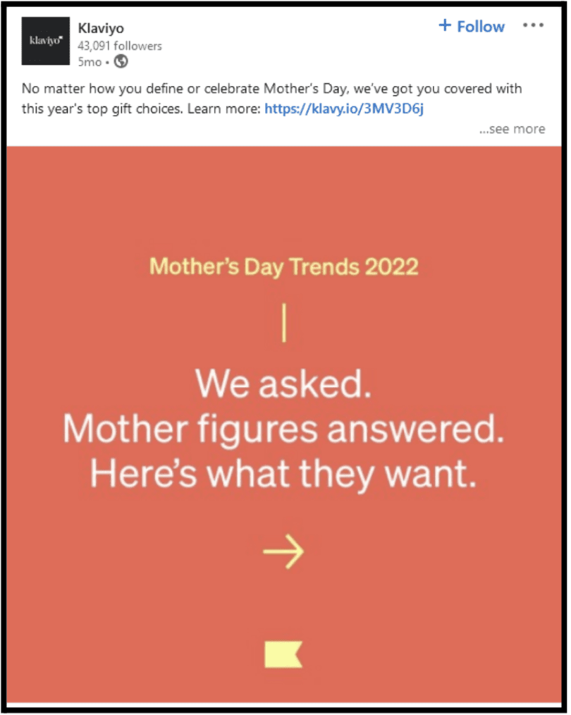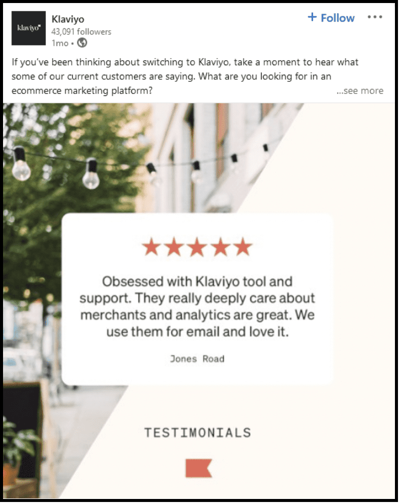 But it’s easier said than done. You must have a solid strategy to market your brand across various platforms. After looking at Klaviyo’s social media approach, there are certain strategies you can use for your B2B brand as well.