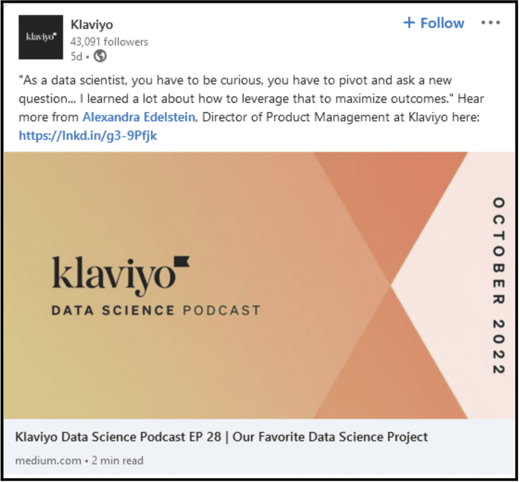 Let’s look at Klaviyo’s LinkedIn profile and see the strategy followed by the brand.