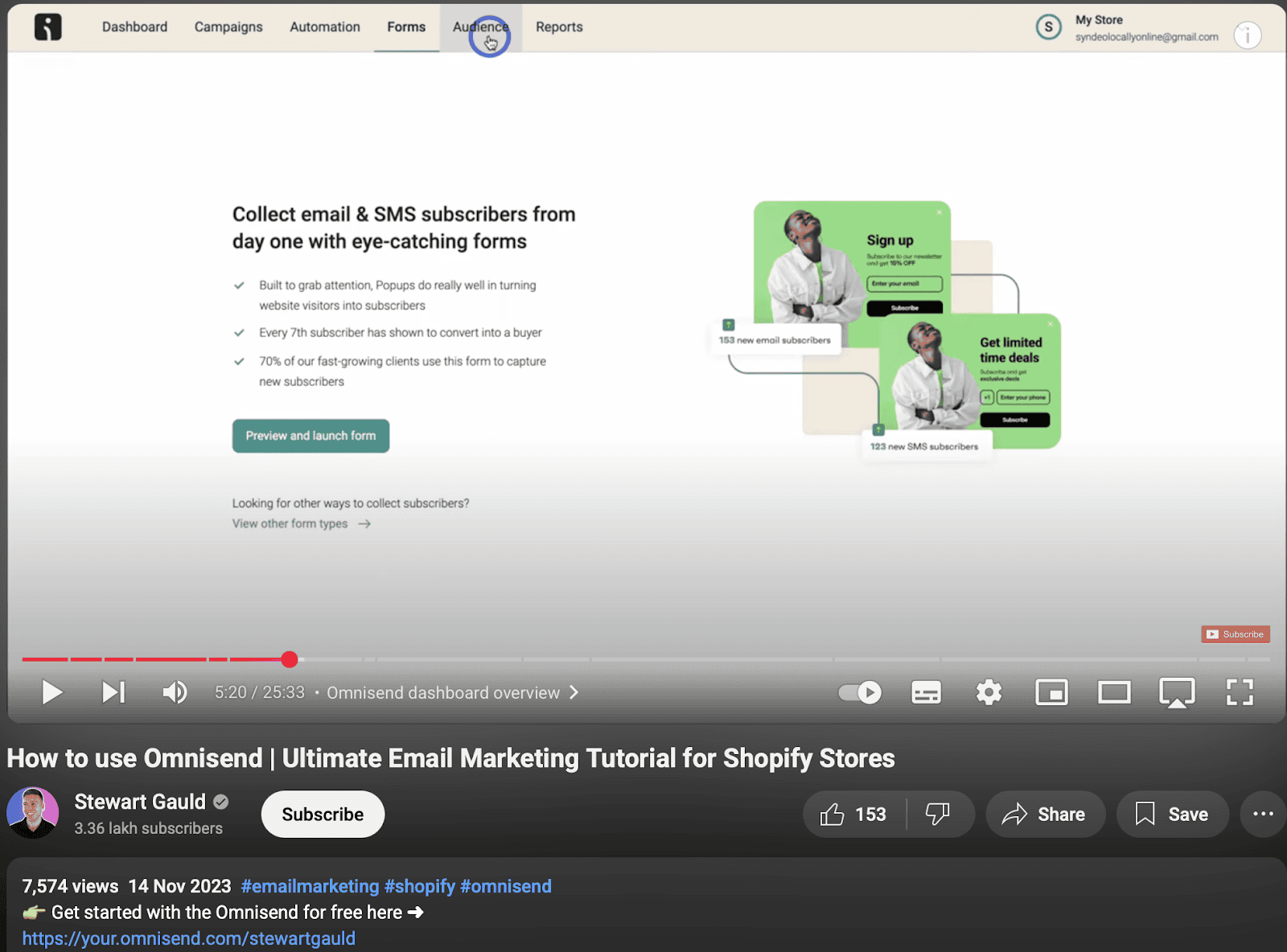 The video offers an in-depth tutorial on Omnisend’s email marketing feature and adds a CTA for quick access.