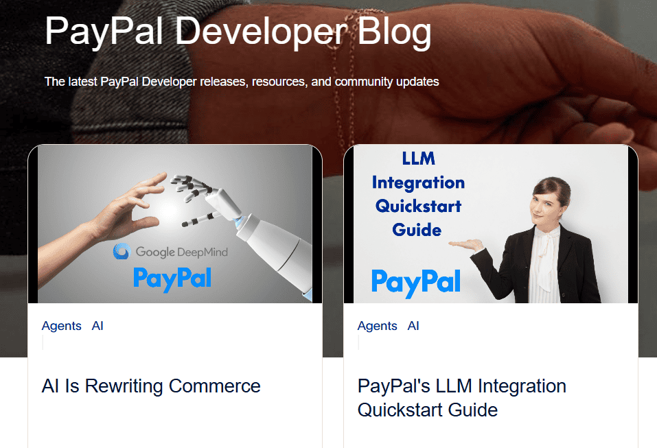 PayPal’s Developer Community Blog delivers “The latest PayPal Developer releases, resources, and community updates” covering topics like AI, technology announcements, and learning resources.