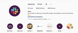 Often B2B businesses struggle with their Instagram bio. What should they talk about, and what links to mention? But we appreciate how Slack kept it brief and to the point while emphasizing the brand’s mission.