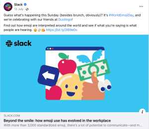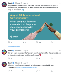 Slack is also very active on topical days to interact with its audience. Keeping up with trends that are relevant to your audience helps increase your engagement rate on social media.