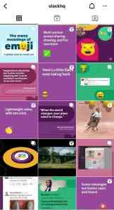 Looking at Slack’s Instagram account, you can see how everything blends so flawlessly with the color scheme and design of the B2B brand. The use of only brand colors increases brand recognition. You must use the same design strategy for your social media marketing efforts as well.