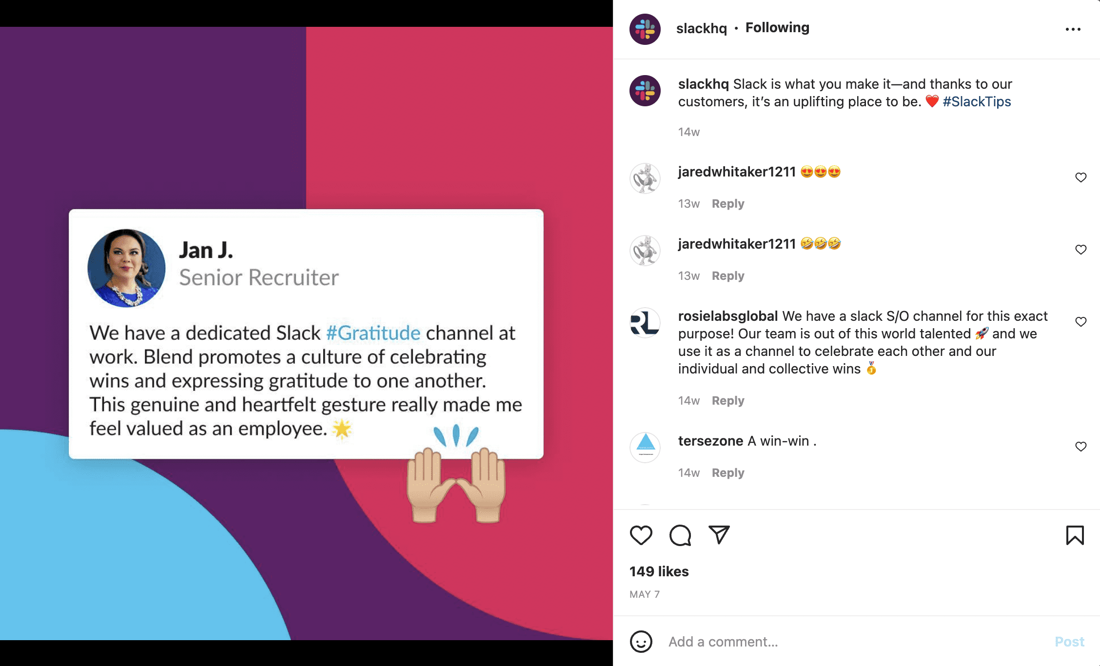 If you look closely at Slack’s social media posts, you’ll see that the company has placed a lot of emphasis on user-generated content.