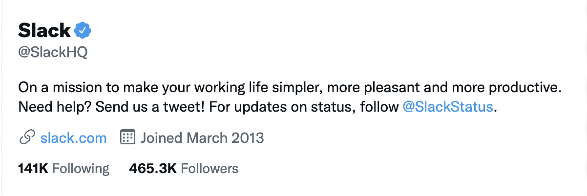 As previously stated, Twitter is a great platform for sharing the most recent information about your B2B business and providing support. Slack has a succinct and captivating bio that defines its mission. We like that they’ve asked customers to contact them for assistance. Excellent place to begin!