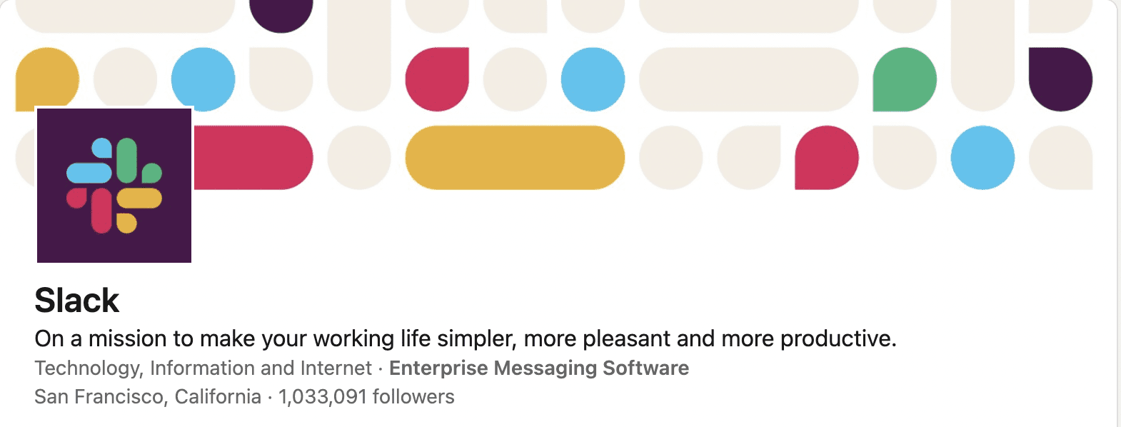 Well, each of us knows how important a cover picture is. Most B2B businesses write a statement or two about their brand here, but Slack decided to post a non-statement cover picture. The patterns and colors make it quite evident that it is Slack.