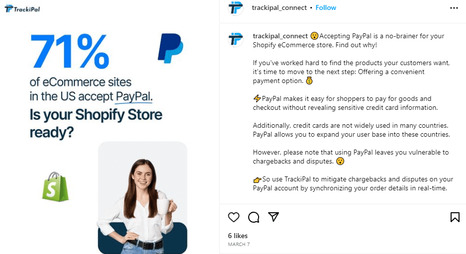 For example, the TrackiPal PayPal auto-sync app creates original content such as infographics, videos, or blog posts that cover industry news and trends. This helps the brand establish itself as a thought leader in the industry. Take a look at some of its posts on social media, where it has shared recent stats and other relevant information.