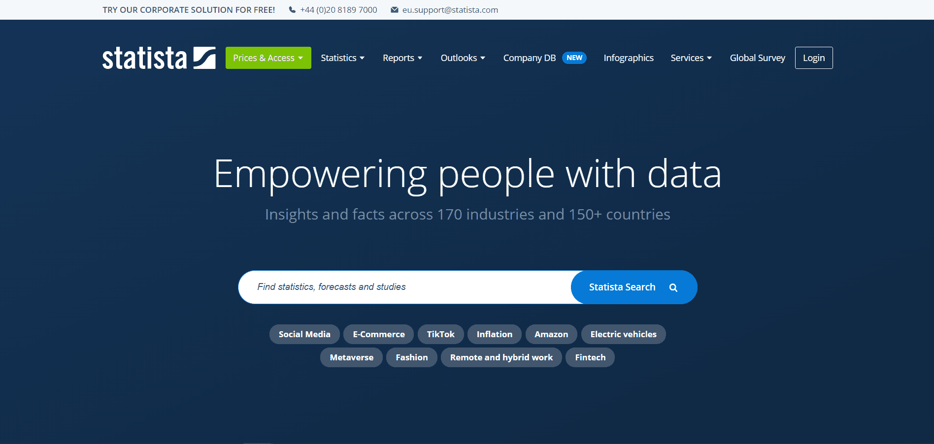 Statista provides market and consumer data that you can use in your blogs, case studies, and reports. It contains data on 170 industries, including media, business, tech, politics, and society.Â