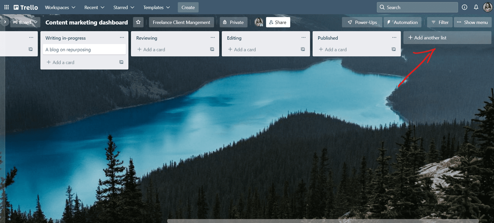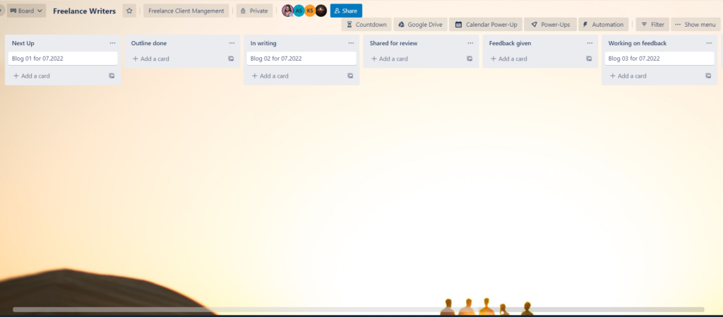 Create a new Trello board to manage content writers in your team. This will ensure there is no confusion and misunderstanding among other team members. You can also easily track the progress of your editorial calendar.
