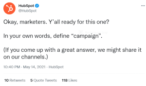 Here’s an example of how HubSpot is trying to connect with its target audience – marketers, casually.