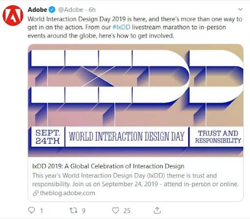 Adobe has used Twitter creatively using all post types to engage with the users including creative use of video format. From a tweet announcing the firm’s latest drawing and painting app’s arrival on iOS to news of its subsidiary Marketo’s Fearless 50 list of top global marketers, Adobe keeps its Twitter messaging both joyful and informative.
