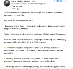 With the strategy in place, we began creating content that resonated with Peter’s target audience, focusing on ESG, Go-to-market strategy, bridging marketing & sales (Smarketing), tips to shorten B2B sales cycles/ increase B2B conversion, and buyer enablement content.