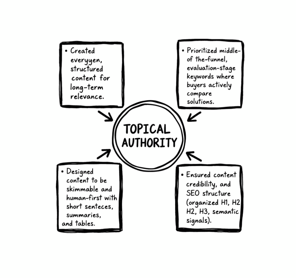 - Built micro-conversion opportunities into content (CTAs, demos, and internal links).