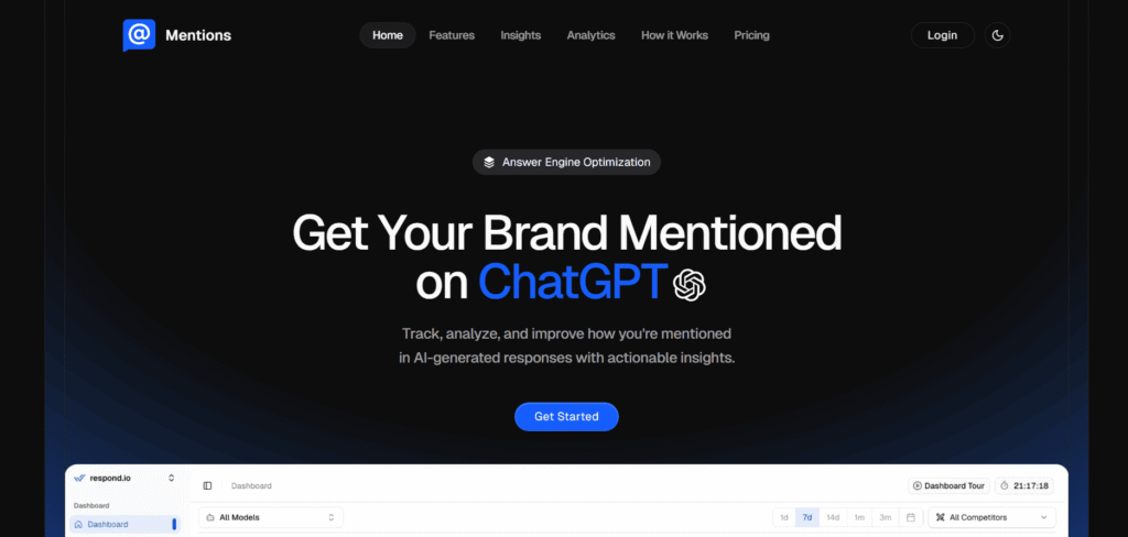 Mentions help your brand show up in AI-generated answers across platforms like ChatGPT, Gemini, Claude, Perplexity, and more. Instead of guessing how AI tools describe your business, Mentions gives you real data so you can see where you stand, what’s being said, and where competitors are winning.