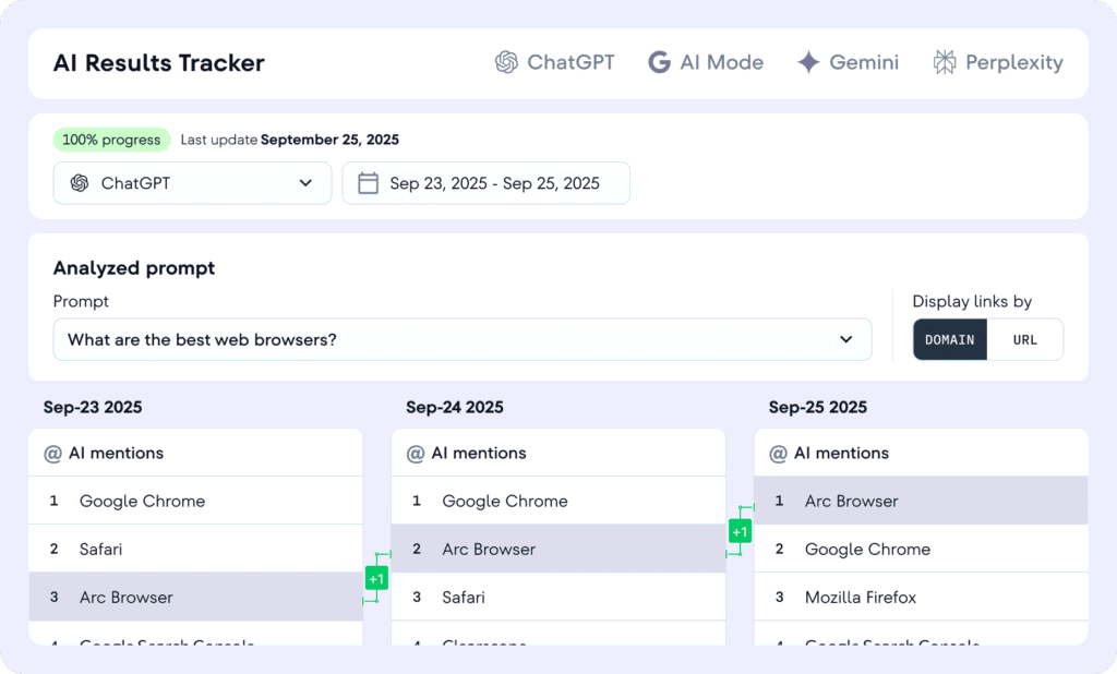 With AI-powered visibility tracking becoming more relevant each year, SE Ranking gives you insights into how your brand appears not only in Google but also across emerging AI search engines.