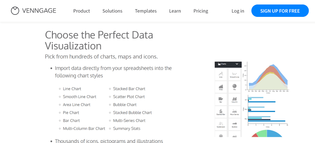 Venngage is a smart designing tool that allows users to easily create and customize a variety of visual content, including infographics, posters, social media graphics, reports, presentations, and more.
