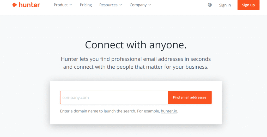 Hunter lets you find verified emails from different websites. Whether you’re looking for industry experts for quotes or pitching bloggers for backlinks, Hunter can pull out everyone’s emails. It comes with a Chrome plugin so you can collect emails automatically while browsing through various web pages.