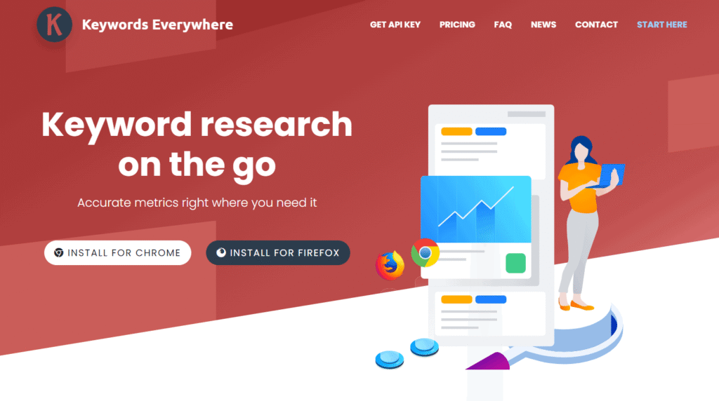 Keyword hunting is time-consuming, but Keywords Everywhere makes it super easy. It’s a Chrome extension that pulls out relevant keywords whenever you search for a term on Google. It shows keyword volume, CPC, competitor data, and related keywords and saves you hours of back and forth copying data from a website.
