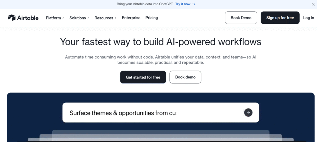 Teams often use Airtable to map website pages, manage content inventories, and visualize publishing schedules through calendar views. It’s flexible, easy to customize without code, and useful for teams that want clearer visibility into their content without moving to a heavy planning platform.