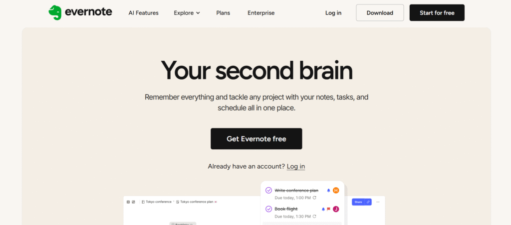 Its strength lies in organization and recall. Notes sync across devices, are easy to tag, and can be quickly retrieved when planning content. While it’s not a full planning or publishing tool, Evernote fits nicely as a supporting system for early-stage content thinking.