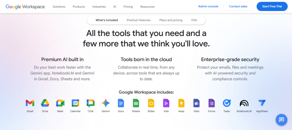 Google Workspace is one of the most widely used content planning setups, mainly because it’s mostly free and already part of how many teams work. Many businesses rely on Docs for drafting, Sheets for tracking, and Calendar for managing deadlines, without adding another tool to the stack.