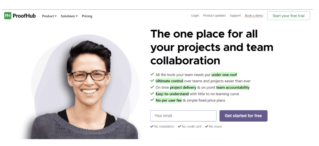 ProofHub lets you plan and organize projects with a table view, kanban boards, Gnatt charts, and custom workflows.