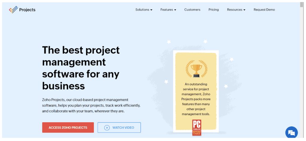 Zoho is a cloud-based project management system that lets you plan projects, manage tasks, and collaborate with your office teams from the comfort of your home. It’s one of the best project management software for SMEs.
