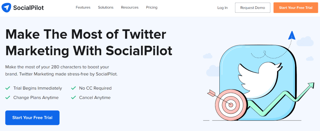 SocialPilot is a Twitter marketing tool that helps you schedule and manage your posts. It allows you to bulk schedule 500 tweets and personalize these posts with images, emojis, videos, GIFs, etc. It also provides you with all the necessary Twitter analytics.