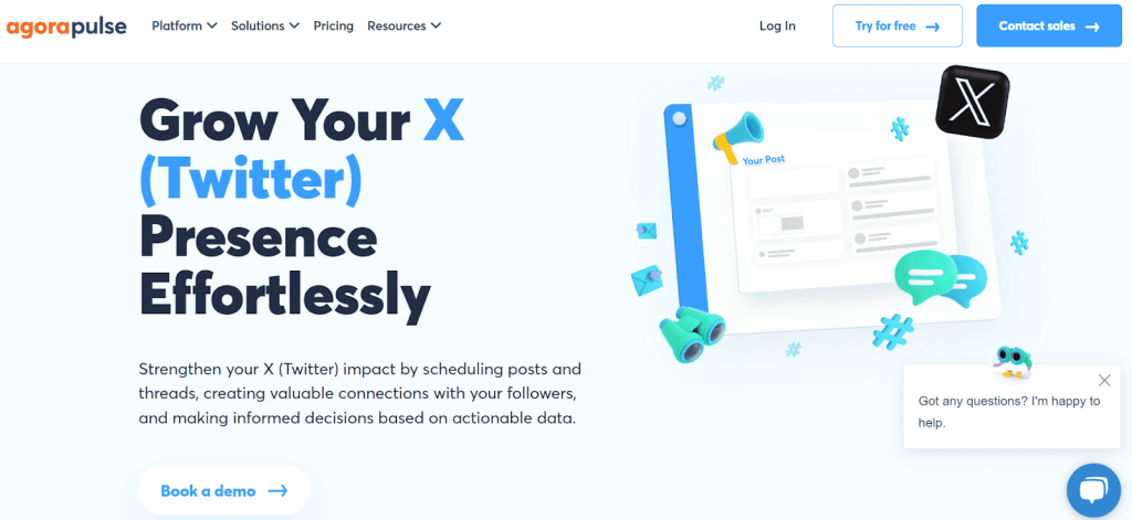 AgoraPulse is an all-in-one Twitter tool that helps you with writing, scheduling, and publishing content. It also allows you to keep track of your social media presence and provides ROI reports.