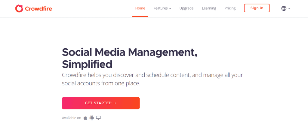Crowdfire simplifies social media management by helping you discover and schedule content while managing all your social accounts from one platform. It automatically finds relevant articles and images, and allows you to publish updates from your blogs, websites, or online shops.