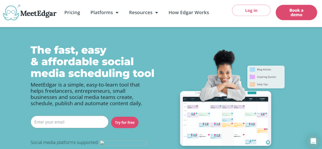 MeetEdgar is an intuitive social media management tool that automates X/Twitter posting. It allows you to schedule tweets, track performance, and create tweet variations to maximize engagement. Import evergreen content, set your schedule, choose categories, and let Edgar handle the rest.